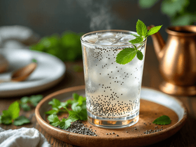 Chia Water, known as 'sabja ka paani' in many Indian households, is a refreshing and hydrating beverage rooted in Indian wellness traditions. Popular for centuries during the hot Indian summer, chia or sabja seeds are valued for their cooling properties and are often consumed during fasting periods, especially in regions like Gujarat and Maharashtra. The subtle flavors, combined with the slight crunch of soaked chia seeds, make this drink not only delightful but also deeply satisfying. This healthy beverage is renowned for its simplicity and nutritional benefits. Chia Water is a staple during festivals like Navratri and Maha Shivratri, when many prefer light, sattvik foods and drinks. Its minimal ingredients allow for versatility, with options to infuse with nimbu (lemon), pudina (mint), or seasonal fruits to suit local tastes. Ideal for those conscious of their health, Chia Water serves as a natural energy booster, keeping you hydrated throughout the day while offering a gentle, earthy taste that complements traditional Indian meals.