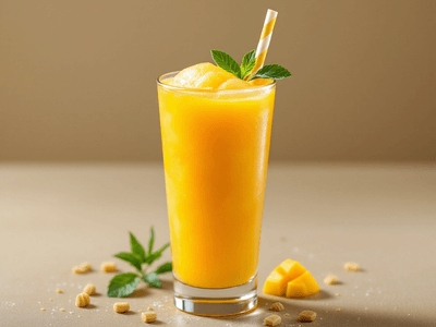 Mango Slush is rich in vitamins, especially vitamin C and vitamin A, which support immunity and eye health. Mangoes provide dietary fiber, while lemon juice boosts antioxidant content. By using honey instead of refined sugar, this beverage is lower in empty calories and has a lower glycemic load. Mint leaves add additional antioxidants and digestive benefits. Overall, this slush is a hydrating, nutrient-dense alternative to sugary sodas.