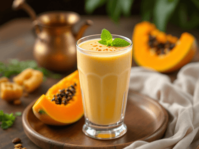 Papaya Milkshake, or 'Papita Milkshake' as it's commonly called in Hindi, is a refreshing Indian beverage that brings together the goodness of ripe papaya and the richness of milk. This shake is loved for its creamy texture, vibrant color, and naturally sweet taste. It's a staple in many Indian households, especially during the hot summer months, when cooling drinks are most sought after. Papaya is a tropical fruit widely grown in South India, particularly in Kerala and Tamil Nadu, and is revered for its digestive benefits and high vitamin content. This milkshake is often served as a nutritious breakfast or light snack, and is sometimes flavored with local spices like cardamom (elaichi) or garnished with chopped nuts for added crunch. In India, Papaya Milkshake is not only enjoyed for its taste, but also for its health benefits. It’s a popular choice during festivals like Holi and Diwali, when refreshing beverages are served alongside festive meals. The shake can be easily customized to suit dietary preferences—using low-fat milk for calorie-conscious individuals, or adding honey for natural sweetness. Papaya Milkshake is also favored in Ayurveda for its cooling properties and digestive aid. Whether you’re looking for a post-workout drink or a quick breakfast, this beverage fits seamlessly into a balanced Indian diet. Its creamy texture and fruity flavor make it a hit with both adults and children, and its simplicity ensures it can be prepared in just a few minutes.