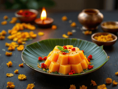 Papaya Halwa is a delightful South Indian dessert that highlights the natural sweetness and nutritional richness of ripe papaya. Often called 'Pappali Halwa' in Tamil Nadu, this unique sweet dish is cherished for its vibrant color, luscious texture, and aromatic flavor. Traditionally prepared during festivals like Pongal and Diwali, Papaya Halwa is a healthy alternative to sugar-laden sweets, making it a popular choice among health-conscious families in South India. Made with ripe papaya, minimal ghee, and a touch of jaggery (gur) or unrefined sugar, this halwa is not only easy to prepare but also brings a tropical twist to your festive table. The use of cashews, raisins, and cardamom (elaichi) enhances both taste and nutrition, creating a well-balanced dessert. Papaya Halwa is naturally vegetarian and can be easily adapted to vegan diets, making it suitable for a wide range of palates. Its gentle sweetness and creamy consistency appeal to both kids and adults, making it a perfect treat for breakfast or as a nutritious after-meal dessert.