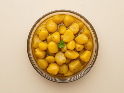 Bhi Pickle, also known as Lotus Stem Pickle, is a cherished delicacy from North India, particularly popular in Punjabi households. Prepared using crunchy lotus stems (bhi or kamal kakdi), this tangy and spicy achar is a quintessential side dish served with lunch, especially during summers when lotus stems are in season. Its unique texture and zesty flavor profile make it a delightful accompaniment to dal-chawal, parathas, or even khichdi. The art of making homemade pickles, or achar, is deeply ingrained in Indian culinary tradition, often passed down through generations. Bhi Pickle stands out for its refreshing crunch, earthy undertones, and robust masalas. Unlike oily commercial pickles, this healthy version uses minimal mustard oil and natural spices, offering all the flavor without extra calories. Traditionally, it is sun-cured, allowing the flavors to mature, but modern kitchens can achieve similar results with careful preparation. Enjoyed during festivals like Teej and as part of everyday thalis, Bhi Pickle brings a burst of North Indian tradition to your plate.