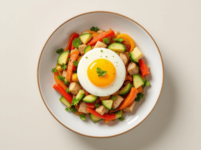 Boiled Egg Whites with Mixed Vegetables is a delightful and health-conscious Indian lunch option that brings together the best of local produce and protein-rich egg whites. This dish is popular across Indian households for its simplicity, vibrant appearance, and the subtle flavor of lightly spiced vegetables. Traditionally, such protein-packed meals are relished especially during summer days, fasting periods (vrat), or as a post-workout lunch. The use of boiled egg whites ensures a low-fat, high-protein dish, while the addition of colorful vegetables like capsicum (shimla mirch), carrot (gajar), and beans boosts the fiber, vitamins, and minerals in each bite. The taste is fresh and light, with a gentle hint of Indian masalas and the natural sweetness of vegetables. This dish is often enjoyed in regions where eggs are part of a vegetarian diet (known as 'eggitarian'), especially in metro cities and among health enthusiasts. Suitable for festivals like Navratri (if eggs are allowed in your vrat), or as a quick, nourishing meal during busy weekdays, this preparation is both satisfying and guilt-free. It’s a great way to combine nutrition with flavor, making it a family favorite that is easy to prepare and customize according to regional tastes.