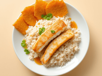Bubur Nasi with Fish Fillet is a comforting rice porridge, popularized in Indian coastal regions with a Malaysian influence, especially among communities in Kerala and Tamil Nadu. It’s a nutritious, light meal featuring soft-cooked rice (chawal) simmered to a creamy consistency and topped with delicately spiced fish fillet. This dish perfectly marries the gentle flavors of rice with the subtle earthiness of Indian spices and fresh herbs, making it a wonderful lunch for those seeking a wholesome, easily digestible meal. In India, rice-based porridges like Bubur Nasi are often served to convalescents, elders, or during fasting days, thanks to their gentle texture and nourishing profile. The addition of fish fillet, marinated with turmeric (haldi), black pepper, and ginger-garlic paste, adds a protein punch and coastal flavor that resonates with Indian palates. Celebrated for its simplicity and balance, this dish is both filling and light, making it ideal for hot afternoons or gentle recovery meals. Its mild taste appeals to all ages, and the inclusion of local ingredients like curry leaves, mustard seeds (rai), and coconut milk creates an authentic Indian touch.