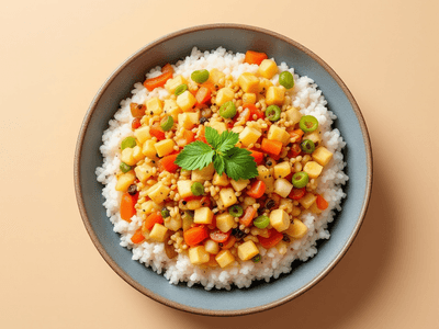 Bubur Nasi with Mixed Vegetables is a wholesome, comforting dish that blends the simplicity of rice porridge with the vibrant flavors of Indian vegetables. Traditionally enjoyed in South India, especially in regions like Tamil Nadu and Kerala, this vegetarian recipe is reminiscent of 'kanji'—a nourishing rice gruel often served during festivals like Pongal for its soothing qualities and ease of digestion. Bubur Nasi is infused with local spices, making it a flavorful yet light lunch option, perfect for those seeking a healthy, filling meal. The dish is celebrated for its adaptability, allowing seasonal vegetables such as carrots, beans (lobiya), peas (matar), and cauliflower (gobhi) to be incorporated for added nutrition and taste. Its creamy texture is achieved by slow-cooking rice (chawal) and vegetables together, seasoned with ginger (adrak), cumin (jeera), and turmeric (haldi). Bubur Nasi is ideal for family gatherings or as a comforting meal during monsoons, offering warmth and nourishment while maintaining low calories—a boon for health-conscious eaters. This recipe is especially popular among those looking for a vegetarian, easily digestible meal that is packed with micronutrients and fiber.