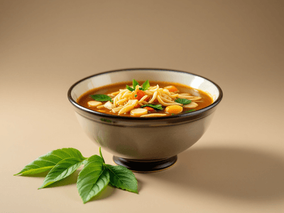 Chap Herbal Soup is an innovative vegetarian dish inspired by the vibrant Indian communities of Singapore, featuring a medley of local herbs and vegetables simmered to perfection. While its roots are tied to Singapore, the soup embraces authentic Indian flavors, incorporating ingredients like jeera (cumin), dhania (coriander), and palak (spinach), making it familiar and comforting for Indian palates. The soup is loved for its light, nourishing quality, ideal for lunch or as a wholesome meal during festivals like Navratri, when vegetarian food is preferred. Its aromatic blend of spices and herbs creates a warming, healing broth, perfect for the Indian climate and family gatherings. In India, herbal soups such as this are traditionally prepared during the monsoon or winter seasons to boost immunity and provide warmth. Chap Herbal Soup stands out as a health-conscious option for calorie trackers, offering a balance of vitamins, minerals, and fiber without heavy oils or dairy. The soup brings together regional ingredients, often found in home kitchens, making it accessible and easy to prepare. Its mild yet flavorful taste appeals to all ages, and it can be customized for various dietary needs, making it a versatile addition to any Indian meal plan.