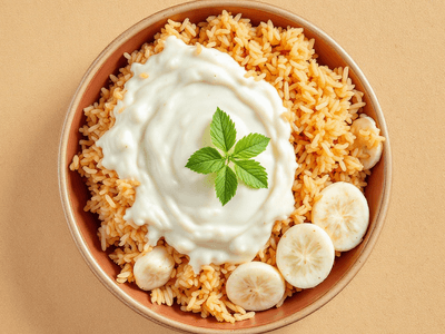 Curd with Red Rice, known as 'Thayir Sadam with Kerala Matta Rice' in South Indian homes, is a wholesome and comforting lunch staple. This dish pairs the nutty, slightly chewy texture of red rice (Matta or Rakta Chawal) with creamy homemade dahi (curd), creating a cooling meal that’s especially popular in Kerala, Tamil Nadu, and parts of Karnataka. Traditionally served during hot summer months or as part of a Sadhya (festive meal), it's beloved for its simplicity and the soothing effect it has on the stomach after spicy curries. Curd rice is often a go-to dish during festivals like Onam and Vishu, as well as a must-have in lunch boxes across South India. The addition of red rice, which is richer in fiber and nutrients compared to white rice, makes this version particularly nourishing. Its subtle tang, creamy texture, and the crunch of tempered spices (tadka or thalippu) make it a satisfying, balanced meal that’s gentle on the palate and the digestive system. For those seeking traditional Indian comfort food that’s both healthy and filling, Curd with Red Rice is an excellent choice.
