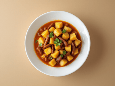 Drumstick and Potato Curry, known as 'Sahjan aur Aloo ki Sabzi' in Hindi, is a beloved South Indian vegetarian dish that brings the earthy flavors of drumsticks (moringa) and the comforting texture of potatoes together in a mildly spiced coconut-based gravy. Popular across Tamil Nadu, Andhra Pradesh, and Karnataka, this curry is a staple during everyday lunches and is often enjoyed with steamed rice or phulka. The curry’s unique blend of drumstick’s subtle bitterness and potato’s starchy softness creates a wholesome, satisfying meal that is both light and nourishing. Traditionally, this dish is prepared in many South Indian households, especially during festivals like Pongal and Ugadi, where fresh, seasonal vegetables are celebrated. The addition of curry leaves, mustard seeds, and coconut gives the curry its signature aroma, while the simple spices keep it light, making it a perfect fit for those tracking calories. Drumstick is known for its rich nutritional profile, and when paired with potatoes, it makes a balanced meal suitable for all age groups. Drumstick and Potato Curry is a wonderful example of Indian home-cooked comfort food that brings together regional produce, traditional cooking methods, and health-conscious choices. Its versatility allows for adaptation to different dietary needs, making it a must-try for anyone seeking a wholesome Indian vegetarian recipe.