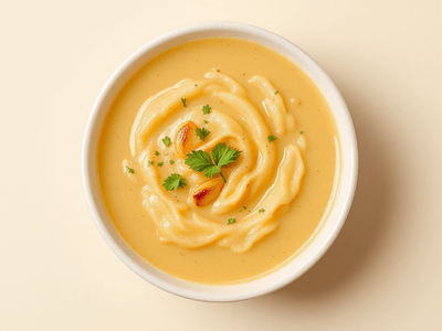 Garlic Soup, known as 'Lahsun ka Shorba' in Hindi, is a comforting and aromatic vegetarian dish cherished in various regions of India, especially during the winter months. Lahsun, or garlic, has long been valued in Indian households not just for its robust flavor but also for its medicinal properties. This soup is often prepared in North India, Rajasthan, and Gujarat, where garlic is used generously in daily cooking. The light yet flavorful broth, infused with spices like jeera (cumin) and kali mirch (black pepper), makes it a perfect accompaniment to lunch, especially during festivals like Lohri and Makar Sankranti, when warming foods are preferred. Traditionally, Garlic Soup is served as a starter or light lunch, balancing taste and nutrition. The soup is easy to digest and is considered a go-to remedy for colds and digestive issues. Its preparation involves sautéing minced garlic in a tadka of ghee (clarified butter) or oil, then simmering with vegetables and spices. The result is a creamy, mildly spicy soup with a distinctive aroma and taste that appeals to all age groups. This healthy recipe is especially popular with those seeking low-calorie, nutrient-rich Indian lunch options. With regional variations like the addition of moong dal or vegetables, Lahsun ka Shorba remains a staple in Indian vegetarian cuisine.