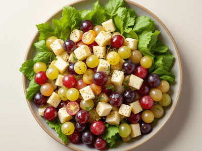 Grape Salad is a refreshing vegetarian dish that brings a burst of natural sweetness and crunch to your lunch table. While salads are not traditionally the centerpiece of Indian cuisine, they have found a cherished place in modern Indian households, especially during the hot summer months or as a light meal during festivals like Holi and Diwali. Using locally available angur (grapes), dahi (curd), and a variety of nuts and herbs, this grape salad recipe offers a delightful twist on classic Indian raita and kachumber salads. The inclusion of chaat masala, kala namak (black salt), and roasted jeera (cumin) imparts a uniquely Indian flavor, making it a vibrant, tangy, and slightly sweet dish that's perfect for health-conscious individuals. The salad is incredibly quick to prepare, requiring minimal cooking and no oil, making it a low-calorie, fiber-rich choice. It combines the juiciness of grapes with the creaminess of hung curd and the crunch of toasted nuts. Whether served as a cooling side dish in a festive thali or enjoyed as a standalone lunch, Grape Salad is a nutritious, delicious way to incorporate more fruits and probiotics into your diet. Its subtle blend of Indian spices elevates the simple ingredients, ensuring every bite is bursting with flavor and goodness.