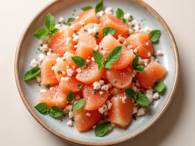 Grapefruit Salad is a refreshing and vibrant dish that brings together the tangy sweetness of grapefruit with Indian flavors and textures. While grapefruit isn't native to India, the fruit is now easily available in many Indian cities, especially during the winter and spring seasons. Indian home cooks love to experiment with salads, and this version uses fragrant mint (pudina), roasted peanuts (moongphali), and a sprinkle of chaat masala to give it a truly Indian twist. The salad is ideal for health-conscious individuals and fits perfectly into a light lunch or brunch menu. This Grapefruit Salad is a fantastic choice during festivals like Holi and Diwali when lighter fare is often appreciated amidst the rich main dishes. The zesty dressing, made with lemon juice (nimbu ka ras) and honey, balances the slight bitterness of grapefruit with a sweet and spicy undertone. The addition of cucumber (kheera), onion (pyaz), and green chilies (hari mirch) ensures every bite is crunchy, juicy, and aromatic. Perfect for those looking for a quick, nutritious, and flavorful salad that celebrates the colors and tastes of India.