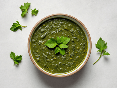 Indian Sorrel Leaves Soup, locally known as 'Gongura Saaru' in Andhra Pradesh and Telangana, is a revitalizing and tangy vegetarian soup cherished across South India. Sorrel leaves, called 'gongura' in Telugu and 'pulicha keerai' in Tamil, lend a distinctive sourness that makes this soup unique and refreshing. Traditionally enjoyed during the lunch hours, especially in the hotter months, this soup is a staple in many Andhra homes and is celebrated for its digestive properties and vibrant flavors. The soup is typically prepared with freshly harvested sorrel leaves, tempered with aromatic spices like jeera (cumin), rai (mustard seeds), and hing (asafoetida), which enhance its nutrition and taste. It’s a popular vegetarian dish during festivals such as Ugadi, when light and wholesome foods are preferred. With its simple preparation, Indian Sorrel Leaves Soup is both comforting and suitable for health-conscious individuals. The dish is an excellent way to utilize locally grown greens, making it a sustainable choice for lunch. Its tangy profile pairs well with steamed rice or can be enjoyed as a standalone soup, offering a burst of traditional South Indian flavors in every sip.