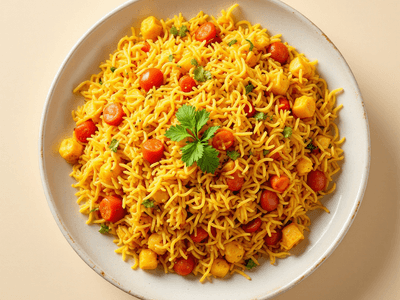 Jain Vegetable Biryani is rich in complex carbohydrates from basmati rice, fiber, and a variety of vitamins and minerals from seasonal vegetables. The use of minimal oil and the absence of deep-fried elements make it heart-healthy and light. Ginger and spices aid digestion, while fresh herbs add antioxidants. This dish provides balanced macros and can be adapted further for specific dietary needs.
