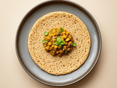 Jowar Bhakri with Baingan Bharta is a beloved Maharashtrian dish, celebrated for its wholesome flavors and rustic charm. Bhakri, a flatbread made from jowar (sorghum) flour, is naturally gluten-free and is a staple in rural Maharashtra, especially among farming communities. Baingan Bharta, a smoky roasted brinjal mash, is spiced with typical Indian masalas and cooked with onions, tomatoes, and coriander, making it both hearty and aromatic. This combination is not only comforting but also deeply rooted in Indian culture. Traditionally enjoyed during lunch, especially in the hot summer months, it is often served during festivals like Makar Sankranti and special family gatherings. The earthy taste of jowar bhakri pairs beautifully with the robust, smoky notes of baingan bharta, making it a must-try for anyone seeking authentic Maharashtrian flavors. This dish is a smart choice for those tracking calories, as it is high in fiber, vitamins, and minerals, yet light on the stomach. It embodies the essence of traditional Indian home cooking—simple, healthy, and satisfying.