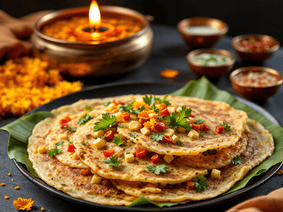 Mixed Vegetable Uttapam is a beloved South Indian delicacy, cherished for its vibrant flavors and wholesome ingredients. Originating from Tamil Nadu, this savory pancake is made using fermented rice and urad dal (black gram) batter, topped generously with a medley of fresh, colorful vegetables. Uttapam is thicker than dosa and has a soft, fluffy texture, making it a filling and satisfying meal. Traditionally prepared on a flat tawa, it is a staple across South Indian homes and Udupi eateries. This dish is perfect for lunch, especially during the summer months when light, nutritious meals are preferred. The combination of seasonal vegetables not only enhances the taste but also adds a delightful crunch and freshness to each bite. Mixed Vegetable Uttapam is often enjoyed with coconut chutney and sambar, making it a wholesome and balanced meal. It is commonly served during family gatherings and festive occasions like Pongal and Navratri, showcasing the diversity of Indian vegetarian cuisine. The vibrant appearance and the subtle tang from the fermented batter make it a favorite among children and adults alike.