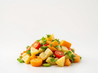 Mixed Vegetable with Potato, known as 'Sabzi' in many Indian households, is a staple dish found across India. It brings together a medley of fresh, seasonal vegetables and 'aloo' (potatoes), sautéed with aromatic spices to create a flavorful and nourishing meal. This dish is celebrated for its versatility and balanced nutrition, making it a favorite for lunch, especially when paired with roti, phulka, or rice. Rooted in Indian culinary tradition, Mixed Vegetable with Potato is enjoyed in every region, with subtle variations in masalas and vegetables based on local produce. It is commonly prepared during family gatherings, festive occasions like Holi and Diwali, or as a comforting everyday meal. The dish perfectly balances taste and health, offering a vibrant mix of colors and nutrients on your plate. The comforting aroma of 'jeera' and 'hing', combined with the sweetness of carrots and peas, makes this sabzi a delightful and wholesome choice for all ages.