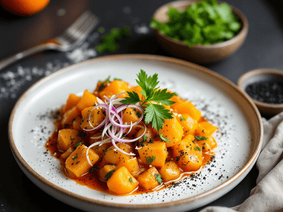 Orange with Black Salt, known locally as 'Santra ka Kala Namak', is a simple yet flavorful North Indian dish often enjoyed as a tangy salad or light lunch during the hot summer months. This refreshing preparation pairs juicy orange segments with the earthy, mineral notes of kala namak (black salt), a staple in Indian kitchens for its unique sulfurous aroma and digestive benefits. Traditionally served during fasting (vrat) days or as part of a fruit chaat, this dish is cherished for its ability to balance sweet, sour, and salty flavors, making it a popular choice for both children and adults alike. The use of black salt is deeply rooted in Indian culinary traditions, particularly in Uttar Pradesh, Delhi, and Punjab, where seasonal fruits are transformed into quick salads or snacks with a sprinkle of masalas. Orange with Black Salt offers a burst of vitamin C and hydration, making it an excellent choice for lunch, especially during festivals like Holi or Navratri, where light and nutritious meals are preferred. Its simplicity, versatility, and healthfulness ensure its place in modern Indian diets, whether as a side dish, a palate cleanser, or a quick energy booster.