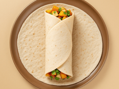 Potato Masala Wraps offer a balanced mix of complex carbohydrates from atta (whole wheat flour) and fiber. Potatoes provide potassium, vitamin C, and are naturally fat-free. Onions and coriander add antioxidants, while mustard seeds and curry leaves are rich in phytonutrients. Using less oil keeps the dish light and heart-friendly. This wrap delivers essential macros and micronutrients, making it suitable for a balanced lunch.