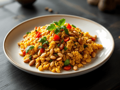Raw Almonds Chaat is a vibrant, nutrient-packed lunch option rooted in Indian culinary tradition. Almonds, known as 'badam' in Hindi, are cherished across India for their richness and versatility. This chaat combines the wholesome goodness of raw almonds with fresh vegetables, tangy spices, and a dash of lemon, offering a delightful mix of textures and flavors. Traditionally, nuts like almonds are used in festive preparations and as healthy snacks during fasting periods, such as Navratri, thanks to their satiating properties. This recipe is inspired by the Indian love for chaat—quick, flavorful mixes often served at street stalls and home kitchens alike. By blending raw almonds with classic chaat ingredients like 'namak', 'mirch', and coriander, this dish becomes a perfect fusion of health and taste. It’s ideal for those seeking a light yet filling lunch, and can be adapted for regional tastes by varying the vegetables or spices. The crunch of badam, freshness of veggies, and zing of lemon make it a favorite during hot summers and festive gatherings.