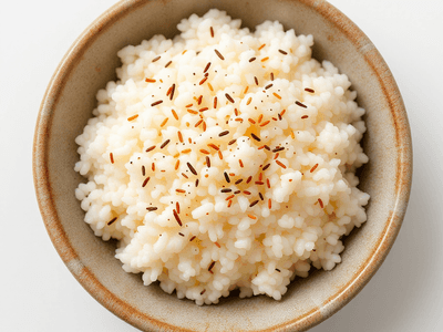 Rice with Inari Tofu is a balanced meal rich in plant-based protein from tofu and complex carbohydrates from basmati chawal. Tofu is an excellent source of iron, calcium, and essential amino acids, making it beneficial for muscle repair and bone health. The addition of vegetables like kheera and gajar boosts fiber, vitamins (A, C), and minerals. Using sesame oil and seeds adds healthy fats and antioxidants. The dish is naturally low in cholesterol and can be made with minimal oil, supporting a heart-healthy diet.