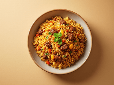 This Spicy Lamb Biryani offers a balance of high-quality protein from lean lamb, complex carbohydrates from basmati rice, and essential vitamins such as B12, iron, and zinc. The addition of fresh herbs like mint and coriander boosts antioxidant content, while minimal oil usage keeps the dish light. Curcumin from turmeric and capsaicin from chilies contribute anti-inflammatory properties, making this a nutrient-dense choice for lunch.