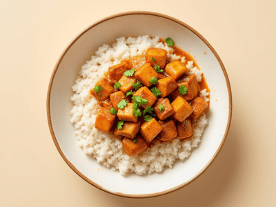 Spicy Tofu Rendang Bowl is an innovative, plant-based twist on the classic rendang, carefully adapted to Indian tastes and ingredients. Infused with aromatic Indian spices such as jeera (cumin), dhania (coriander), and lal mirch (red chilli powder), this protein-rich bowl features golden-seared tofu cubes simmered in a spicy coconut gravy. The dish is balanced with a medley of colorful vegetables and served atop wholesome brown rice or millet (bajra) for a nutritious, satisfying lunch. This recipe pays homage to India's love for bold flavors and vegetarian cuisine, making it an ideal choice for health-conscious foodies and those following a vegetarian or vegan diet. Tofu, a high-protein paneer alternative, absorbs the robust masala perfectly, while the use of coconut milk, ginger, and garlic adds depth and warmth. The Spicy Tofu Rendang Bowl is not only hearty and filling but also packed with nutrients, making it a popular pick for modern Indian kitchens looking to blend tradition with global culinary trends. Celebrate festivals like Holi or Diwali with this vibrant, energy-boosting lunch bowl that brings together taste, health, and cultural flair.
