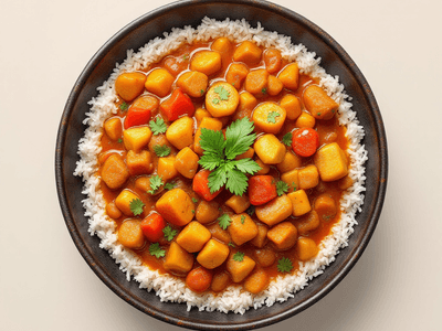 This Vegetable Masala Curry is packed with dietary fiber, vitamins A and C, potassium, and antioxidants from a diverse mix of vegetables. The dish provides a moderate amount of complex carbohydrates and plant-based protein, making it filling yet light. Minimal oil keeps the fat content low, while spices like turmeric and ginger add anti-inflammatory benefits. The use of fresh ingredients ensures a nutrient-dense meal suitable for most diets.