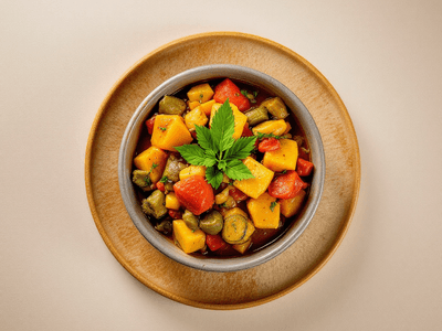 Vegetable Stew, traditionally known as 'Ishtu' in Kerala, is a classic South Indian dish celebrated for its subtle flavors and healthful ingredients. This light yet comforting stew is a medley of fresh seasonal vegetables simmered in coconut milk, spiced with black pepper, green chillies, and fragrant Indian spices like dalchini (cinnamon) and elaichi (cardamom). Usually served with appam, idiyappam, or plain rice, this vegetable stew is a staple during Onam and other festive occasions in Kerala households. Its creamy texture and mild aroma make it a warming choice for lunch, especially during the monsoon season. What makes the South Indian Vegetable Stew unique is its delicate balance of flavors and the use of coconut oil, which imparts a signature taste and aroma. The dish is light on the stomach, easily digestible, and naturally gluten-free. For vegetarians and health-conscious eaters, it provides a nutritious meal packed with vitamins, fiber, and healthy fats. Its popularity has spread across India, with regional tweaks like the addition of curry leaves or the use of local produce, making it a beloved recipe in many Indian homes. Vegetable Stew is not just a meal—it's a celebration of India's rich culinary diversity and wholesome eating.