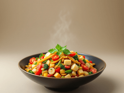 Vegetable Stir Fry is a vibrant and nutritious dish deeply rooted in Indian home cooking, offering a medley of seasonal vegetables sautéed with aromatic spices. This recipe celebrates the essence of Indian culinary diversity, as every region—from Punjab to Kerala—has its own version using locally available sabzi (vegetables) and masalas. The Indian-style stir fry, often called 'subzi bhaji,' is commonly prepared for lunch, especially during festivals like Navratri, when vegetarian meals are preferred for their purity and health benefits. The stir fry is typically cooked on a tawa (griddle) or kadhai (wok), ensuring minimal oil and maximum flavor retention. The harmonious blend of cumin, turmeric, and fresh ginger brings out the earthiness of the veggies, making Vegetable Stir Fry a great choice for those seeking both taste and nutrition. Its crisp texture and wholesome taste make it popular not only for everyday meals but also for festive thalis, where it stands alongside dal, roti, and rice. This dish is an ideal lunch option for calorie-conscious individuals, offering a filling meal packed with vitamins and minerals, without excess fat. In India, Vegetable Stir Fry is more than just food—it’s a celebration of local produce and the joy of eating together. Whether you’re preparing it for a family lunch or as a side during Diwali, this simple yet flavorful recipe guarantees satisfaction and health.