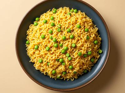 Vermicelli Khichdi with Peas, known as 'Semiyan Khichdi' in many South Indian homes, is a wholesome and comforting one-pot meal, perfect for busy weekdays or festive mornings. Originating from the southern states of India, especially Tamil Nadu and Karnataka, this dish combines roasted vermicelli (semiyan or seviyan) with green peas and a medley of spices for a flavorful experience. Traditionally, it is cooked using minimal oil and fresh vegetables, making it a light and nourishing choice for lunch. Vermicelli Khichdi is often enjoyed during festivals such as Ugadi or as a prasadam during special poojas. Its mildly spiced profile and soft texture make it suitable for all ages, from kids to elders. The addition of green peas not only adds a pop of color but also boosts the protein and fiber content, making this dish a balanced meal. Whether served with coconut chutney, plain curd, or enjoyed on its own, Vermicelli Khichdi with Peas embodies the simplicity and nutrition of Indian home cooking.