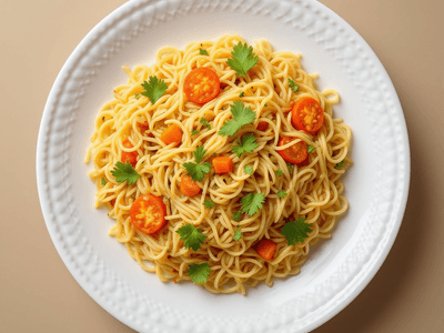 Vegetable Vermicelli Kichadi, also known as Semiya Kichadi, is a beloved South Indian lunch dish that brings together the goodness of seasonal vegetables and roasted vermicelli (semiya). This wholesome one-pot meal is popular across Tamil Nadu, Kerala, and Karnataka, often prepared during busy weekdays or as a light yet satisfying meal on festival fasting days like Ekadashi. The vibrant medley of carrots, beans, peas, and capsicum, flavored with a gentle tempering of mustard, curry leaves, and ginger, makes this kichadi both nourishing and comforting. The soft, mildly spiced vermicelli absorbs the flavors of the vegetables and traditional Indian seasonings, resulting in a dish that is both light on the palate and easy to digest. Vegetable Vermicelli Kichadi is ideal for health-conscious families looking for a nutritious, vegetarian dish that can be prepared quickly without compromising on authentic South Indian taste. The use of minimal oil and a rainbow of vegetables makes this recipe a favorite in Indian homes, especially for lunchboxes and festive occasions when lighter, satvik meals are preferred. Its versatility, quick cooking time, and regional variations make it a staple in many households, perfect for those who wish to enjoy the authentic flavors of South India with a healthy twist.