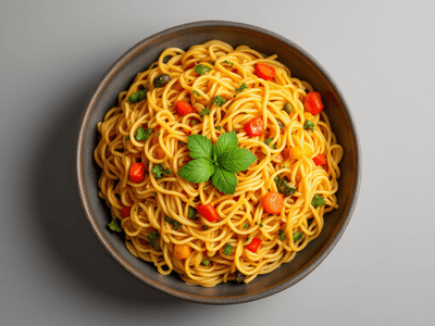 Vermicelli with Mixed Vegetables, popularly known as 'Semiya Upma' in South India, is a vibrant and flavorful one-pot meal that beautifully combines thin roasted semiya (vermicelli) with a medley of seasonal vegetables and aromatic Indian spices. This dish is a beloved staple for breakfast and lunch across Tamil Nadu, Karnataka, Andhra Pradesh, and Kerala, celebrated for its ease of preparation, delightful texture, and the subtle interplay of flavors. Traditionally cooked in homes and served during special occasions like festivals or family gatherings, it has become a symbol of comfort food in Indian households. The taste of this dish is gently spiced, with the natural sweetness of carrots and peas balancing the earthy notes of beans and capsicum. The tempering of mustard seeds, curry leaves, and green chilies infuses an unmistakable South Indian aroma, making Vermicelli Upma irresistible and satisfying. Its versatility allows for numerous regional variations, making it a favorite for calorie-conscious eaters, busy professionals, and families alike. Vermicelli with Mixed Vegetables is not only light on the stomach but also packed with nutrients, making it an excellent choice for health-conscious individuals seeking an authentic Indian lunch option.
